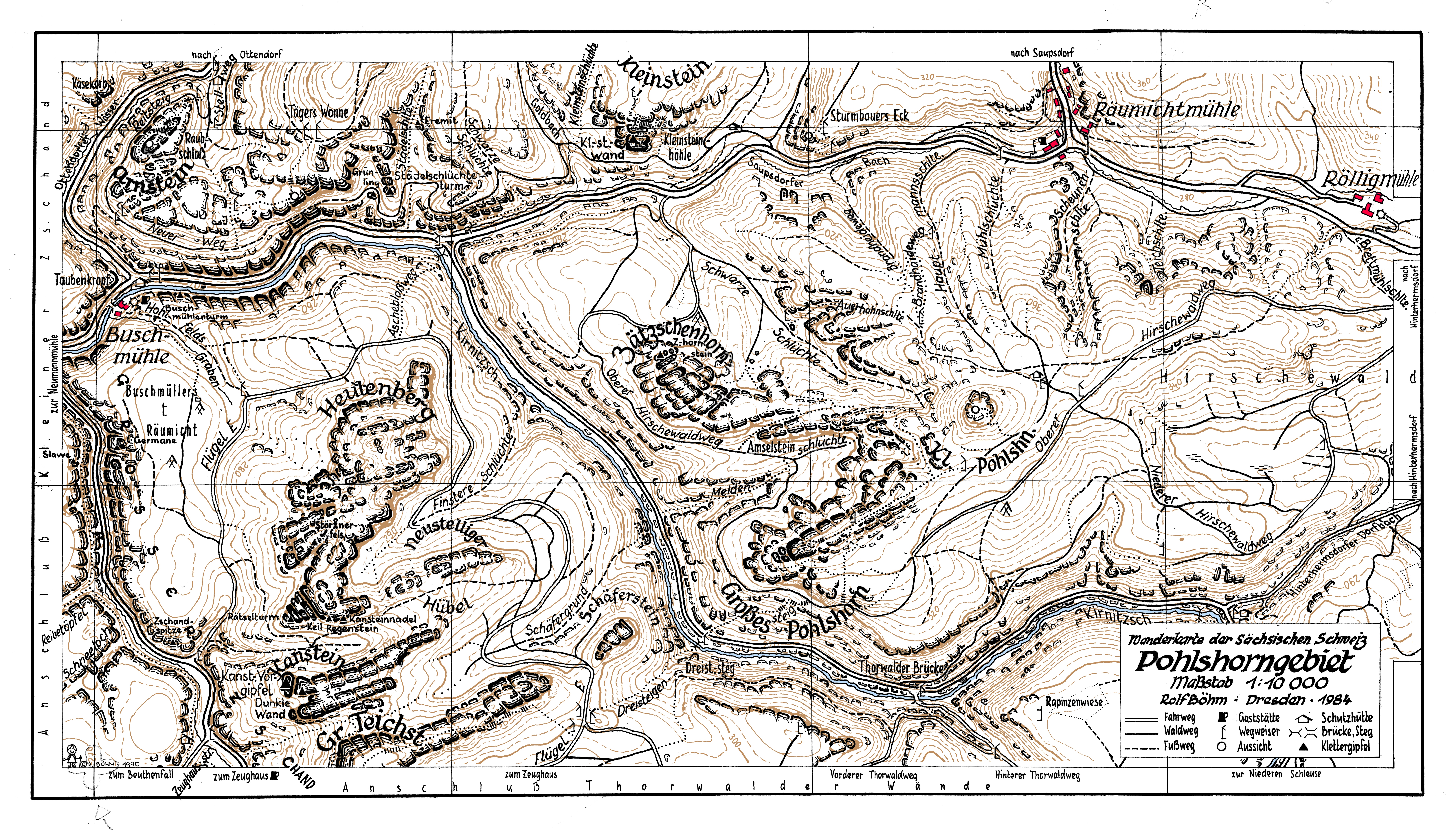 Die Pohlshornkarte ist außer einem kleinen Ausschnitt im Berichtsband VII des Arbeitskreises Sächsische Schweiz noch nie veröffentlicht worden. Die Karte habe ich mit Tusche auf 3 Transparente gezeichnet, aber irgendwann waren die alten Zeichnungen verschollen. Ich hatte es schon aufgegeben, diese Karten jemals wiederzufinden und war ganz traurig.