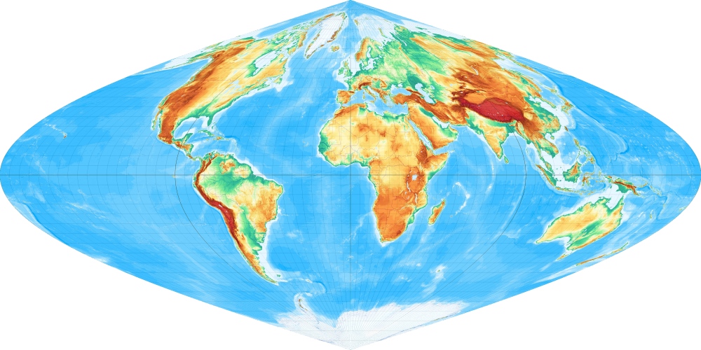 Schliesslich werden die Meridiane eingefügt. Es entsteht ein Netz, welches flächentreu ist.