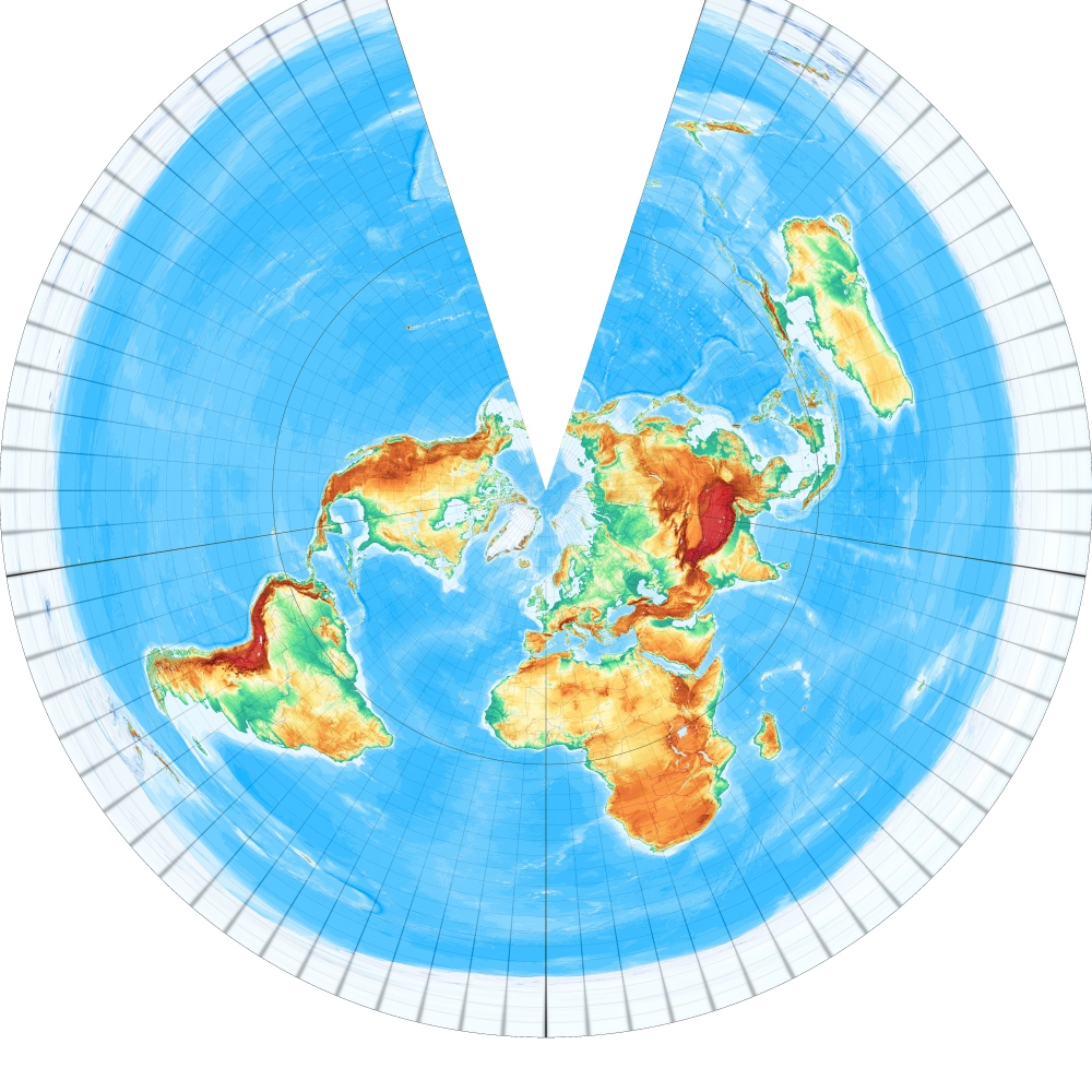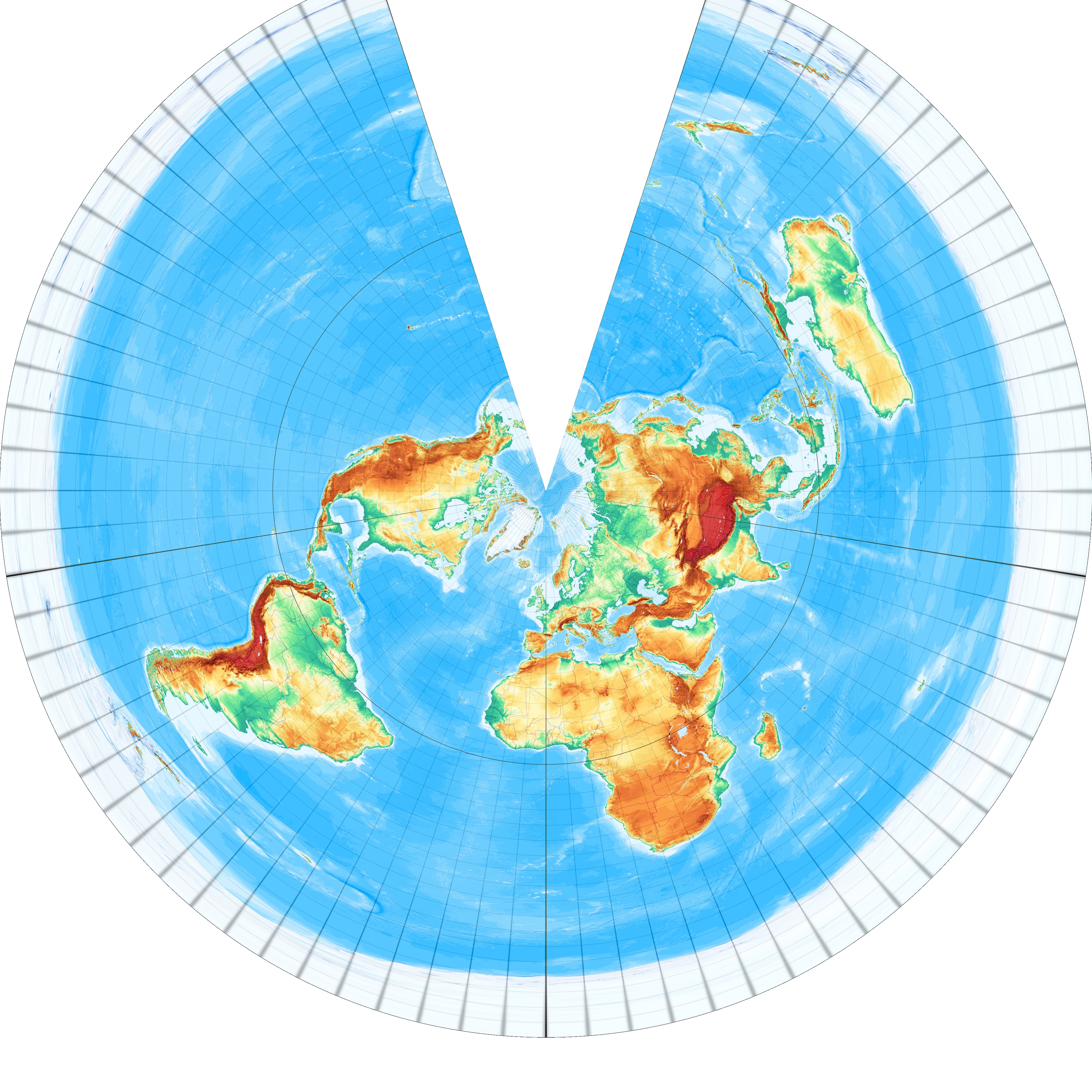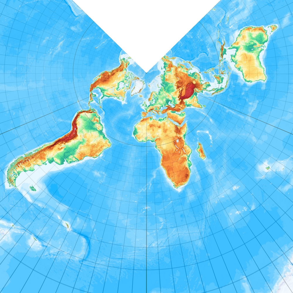 Folgerichtig hat Prof. Frank Canters aus Brüssel 2002 schiefe Kegel zur Abbildung von Amerika vorgeschlagen. Siehe hierzu Canters Netze IV