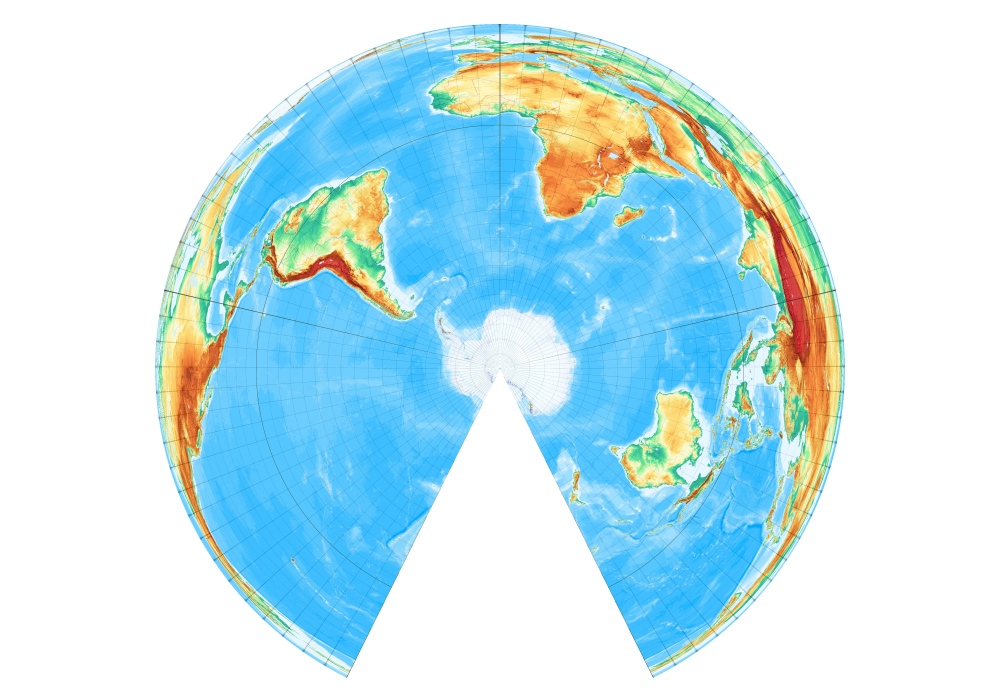 Flächentreuer Kegelentwurf mit dem Südpol als Punkt (Lambert)