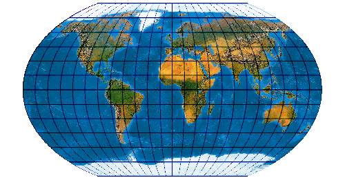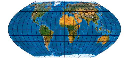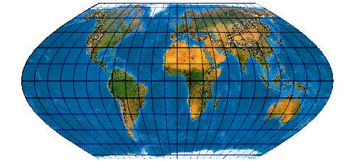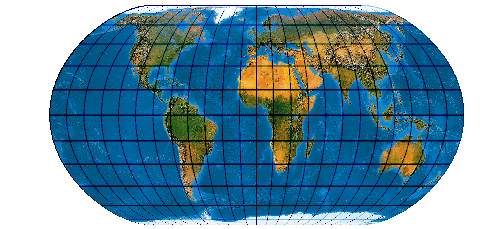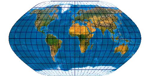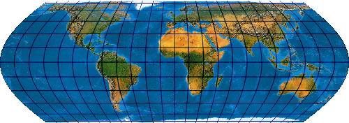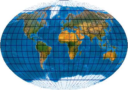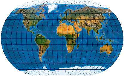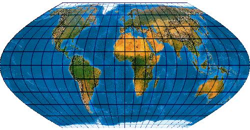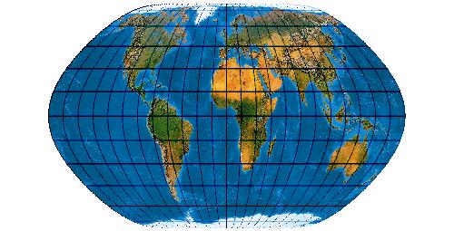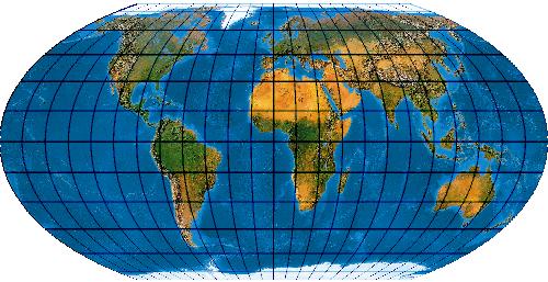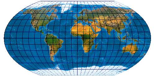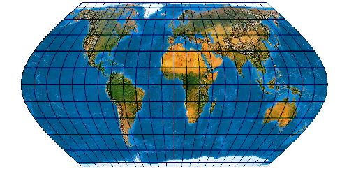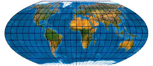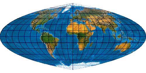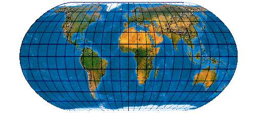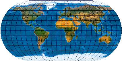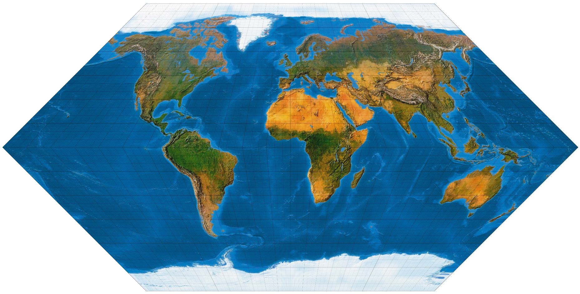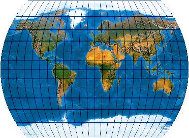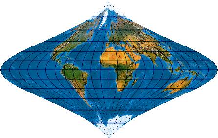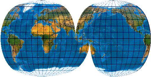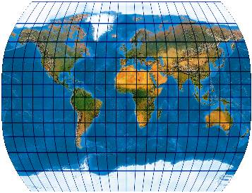Ein speziell für die Abbildung der Ozene geschaffenes Netz. Der Entwurf muss mit einer „Quell-Erd-Plattkarte“, die von -100° bis 300° reicht, gerechnet werden.