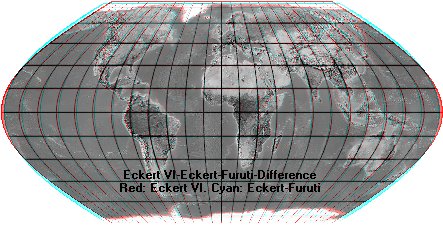 Ein Grund, warum sich der Eckert VI nie so richtig durchsetzen konnte, war die recht „spitze“ Sinuskurven-Außenform. 1992 veröffentlichte Carlos A. Furuti eine Eckert-VI-Weiterentwicklung, bei der die Meridiane keine vollen (180°-)Sinuskurven sind, sondern lediglich (auf 57,29577951°/90°) reduzierte Sinusbogenstücke. Das führt zu einer gefälligeren Außenform. (Furuti: Uma Projeção Cartográfica Equivalente.)