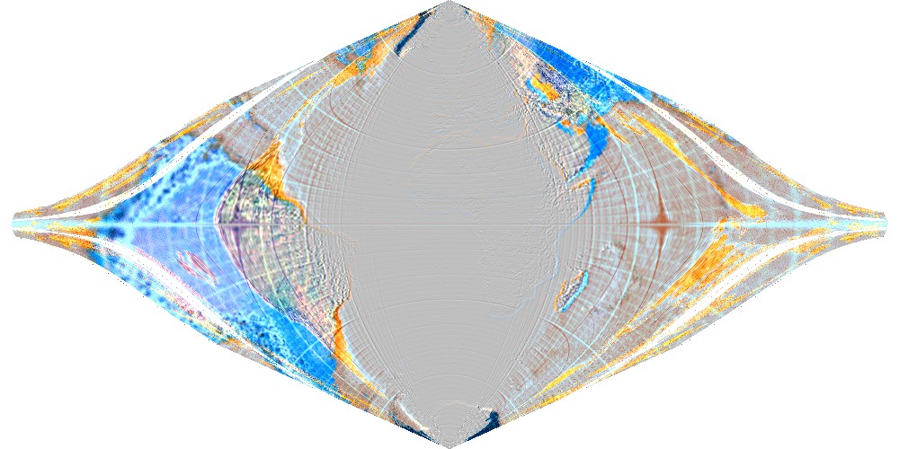 Hoppla, da flutscht Madagaskar aber weg. Wohingegen aber das Kap der Guten Hoffnung vom Grau des größer gewordenen Konvergenzbereiches gleichsam verschluckt wurde.