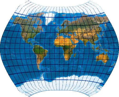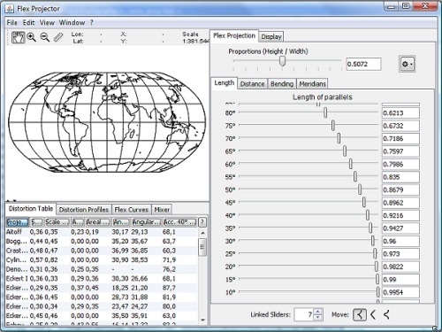 So lassen sich sehr viele Projektionen herstellen. Es ist verblüffend, wie genau sich bekannte Kartennetzentwürfe mit dem Flex Projector approximiieren lassen. Es muss aber gar nicht unbedingt ein bekanntes Netz sein. Jenny und Patterson nutzen den Flex Projector auch für Neuentwicklungen ...