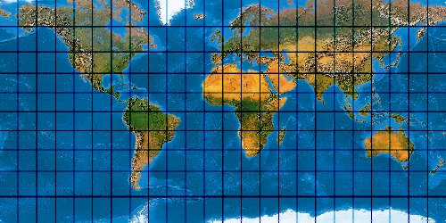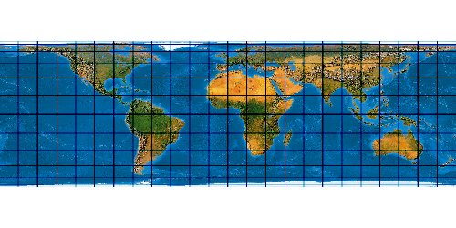 Cylindrical Equidistant (Abstandstreuer Zylinderentwurf oder quadratische Plattkarte) (F. P.) (Direkttransformationprogramm)