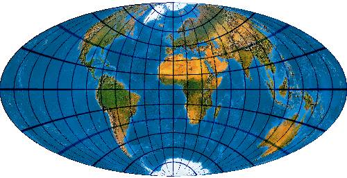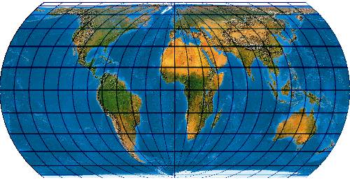 Es gibt auch Varianten der Globularprojektionen, die die ganze Welt abbilden:
