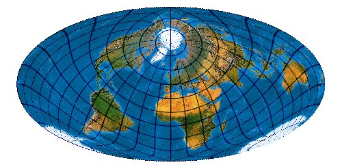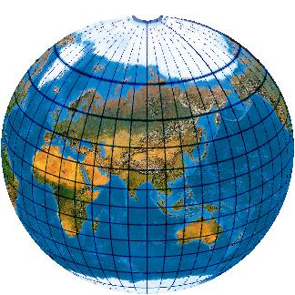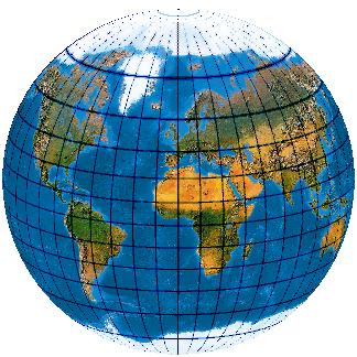 Wie man an Amerika sieht, wird (im Gegensatz zur orthographischen Projektion) mehr als eine Hemisphäre abgebildet.