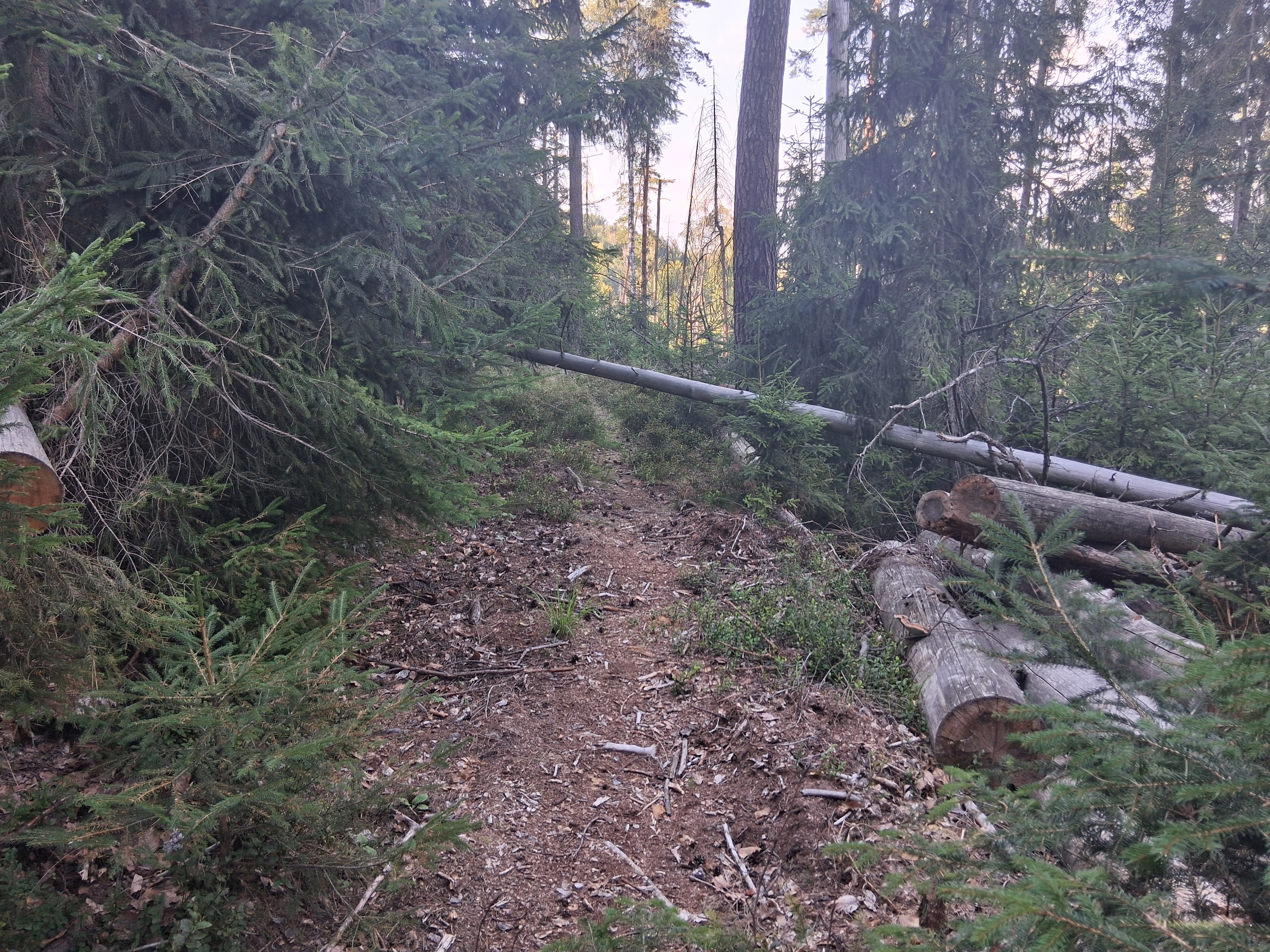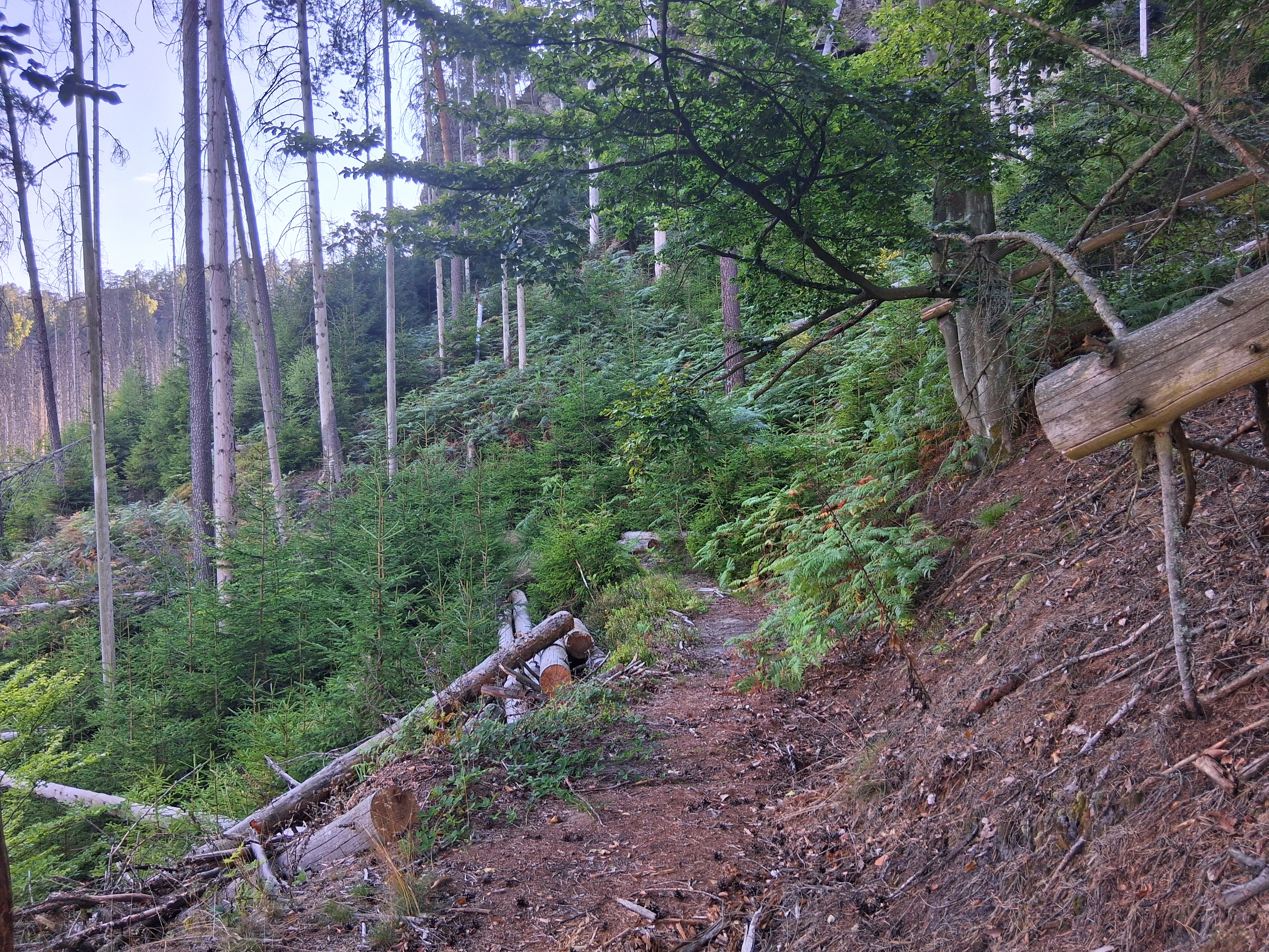 Fast wäre dieser Weg untergegangen, denn das Borkenkäfermikado hat ihn völlig verhauen. Doch nun ist der Weg durch die Nationalpark- und Forstverwaltung Sächsische Schweiz freigeschnitten worden. Dafür ein herzliches Dankeschön.