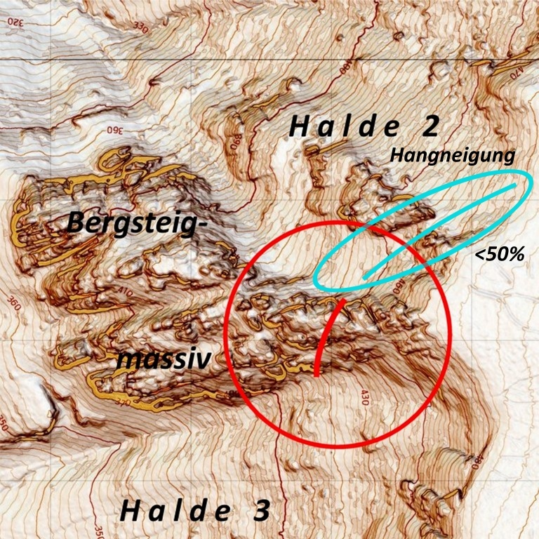 Halde 1 ist ungeeignet, da viel zu steil.