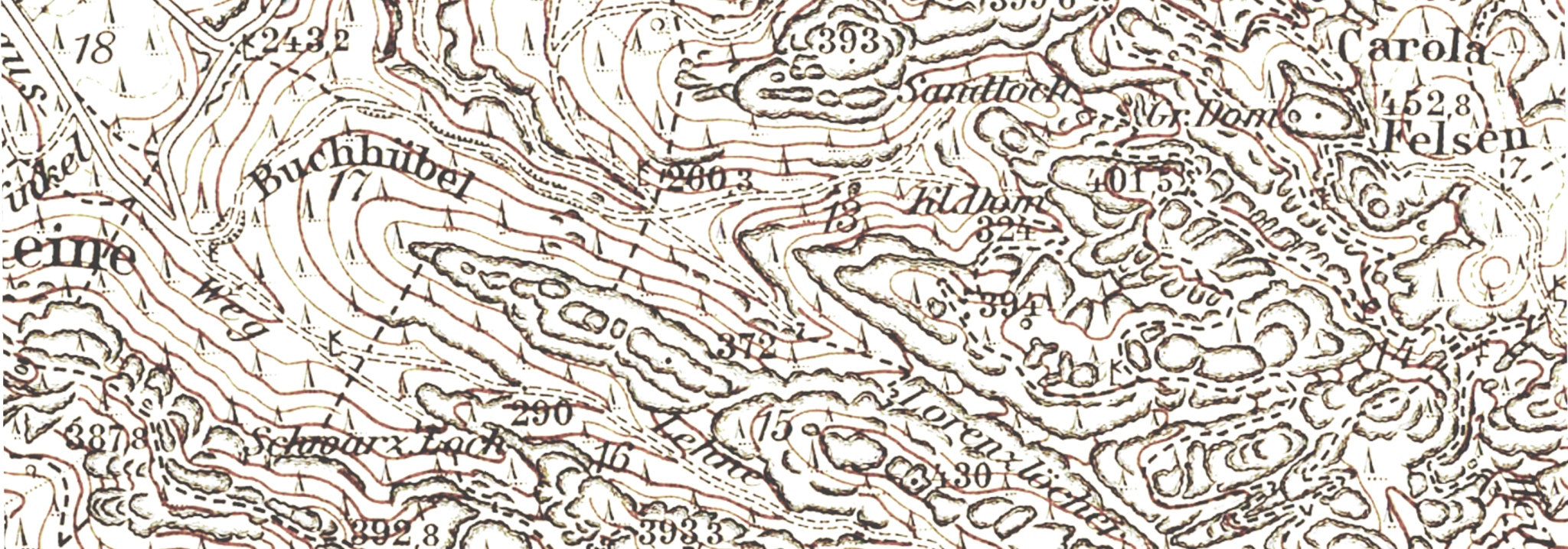 Äquidistantenkarte 1:25000 (1878)Äquidistantenkarte (Messtischblatt-Ausgabe ÄQ1878) siehe unter der Gesamtdarstellung Messtischblatt 1931.